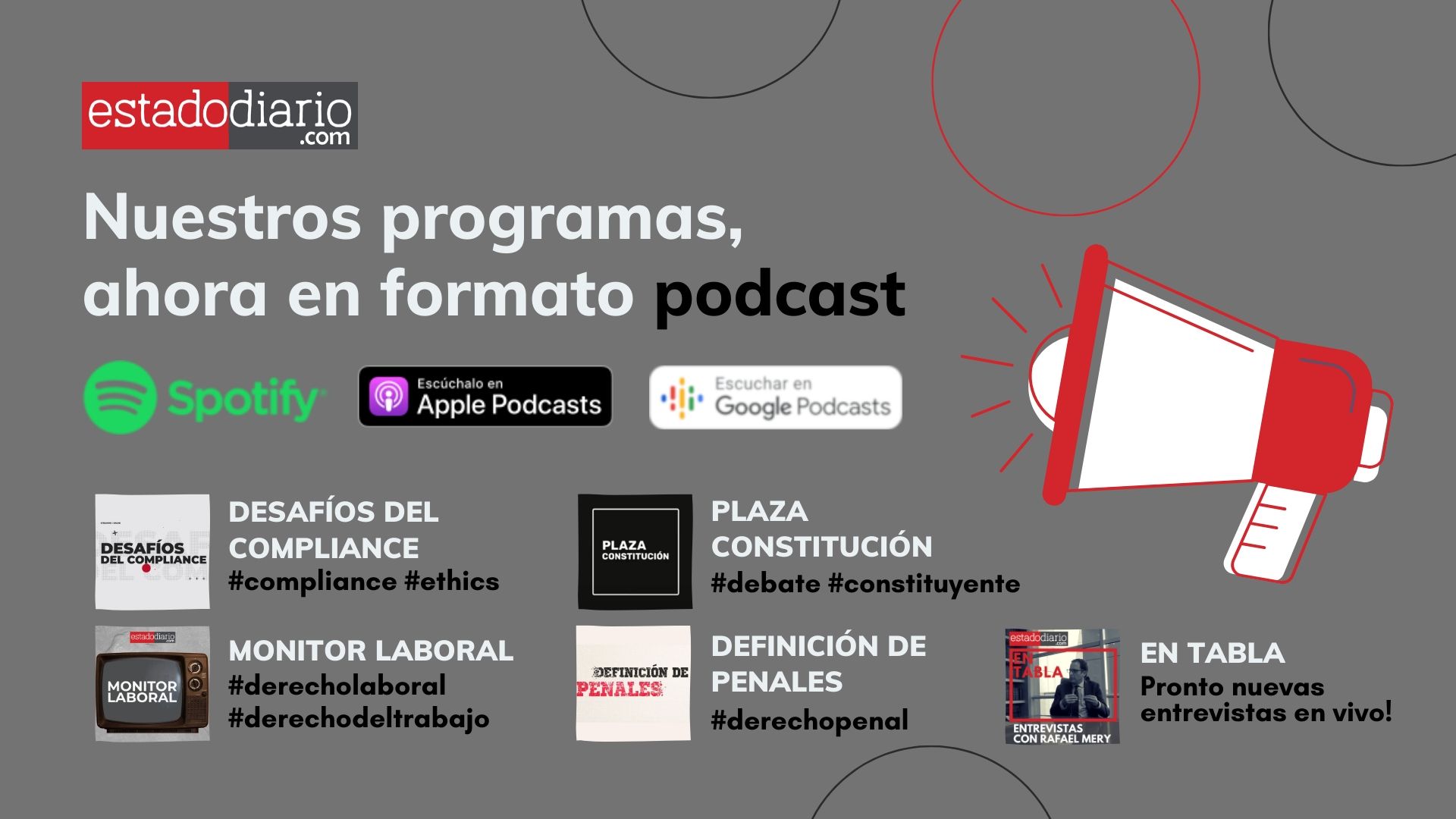 Revisa todos los episodios de nuestros programas, haciendo clic en el nombre de cada uno.